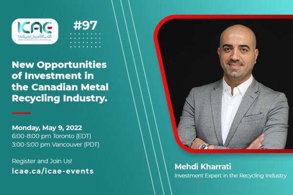 In this webinar, Mr. Mehdi Kharati, who is an expert and manager of investment in the metals recycling industry in Canada, will explain us with the technical and financial details of the this industry and by introducing one of an innovative company in the industry, he will also introduce new investment opportunities in the metal recycling industry in Canada for potential investors.